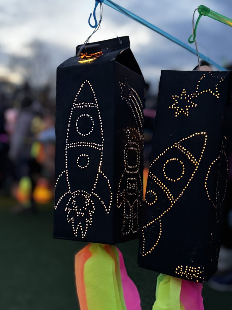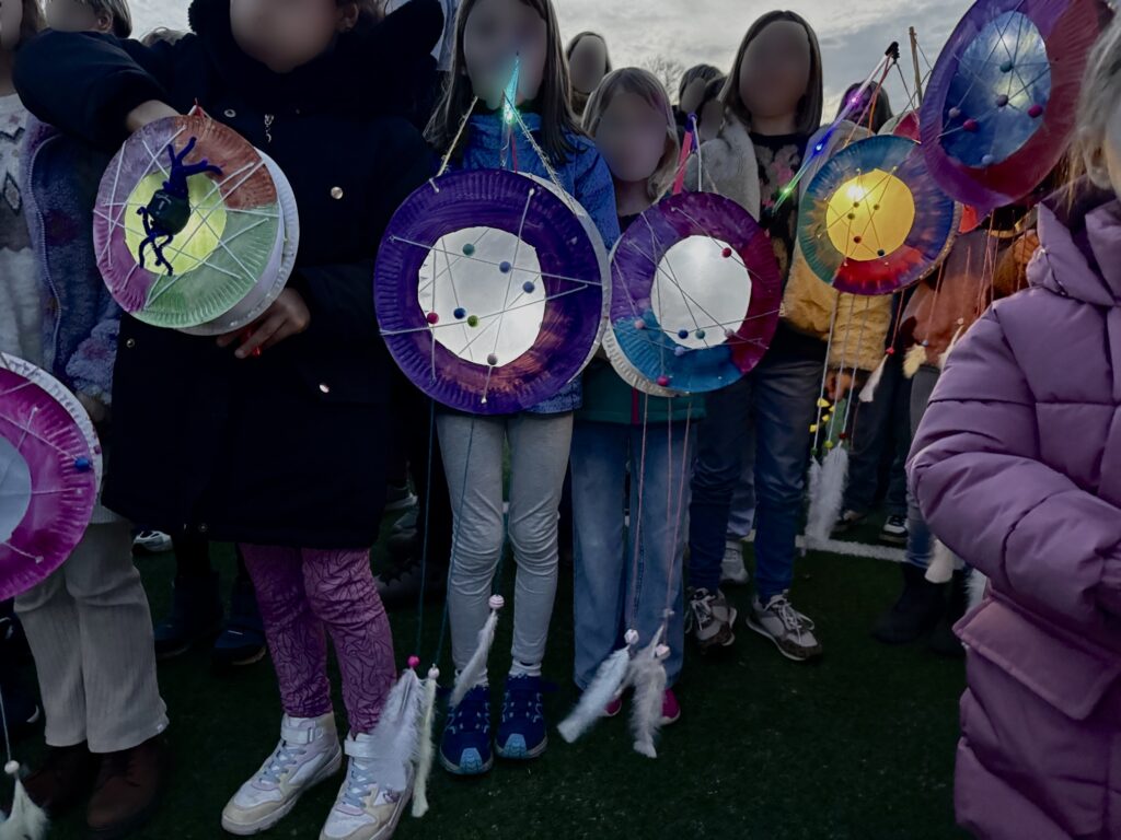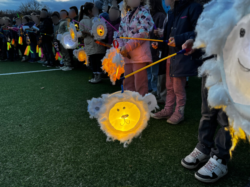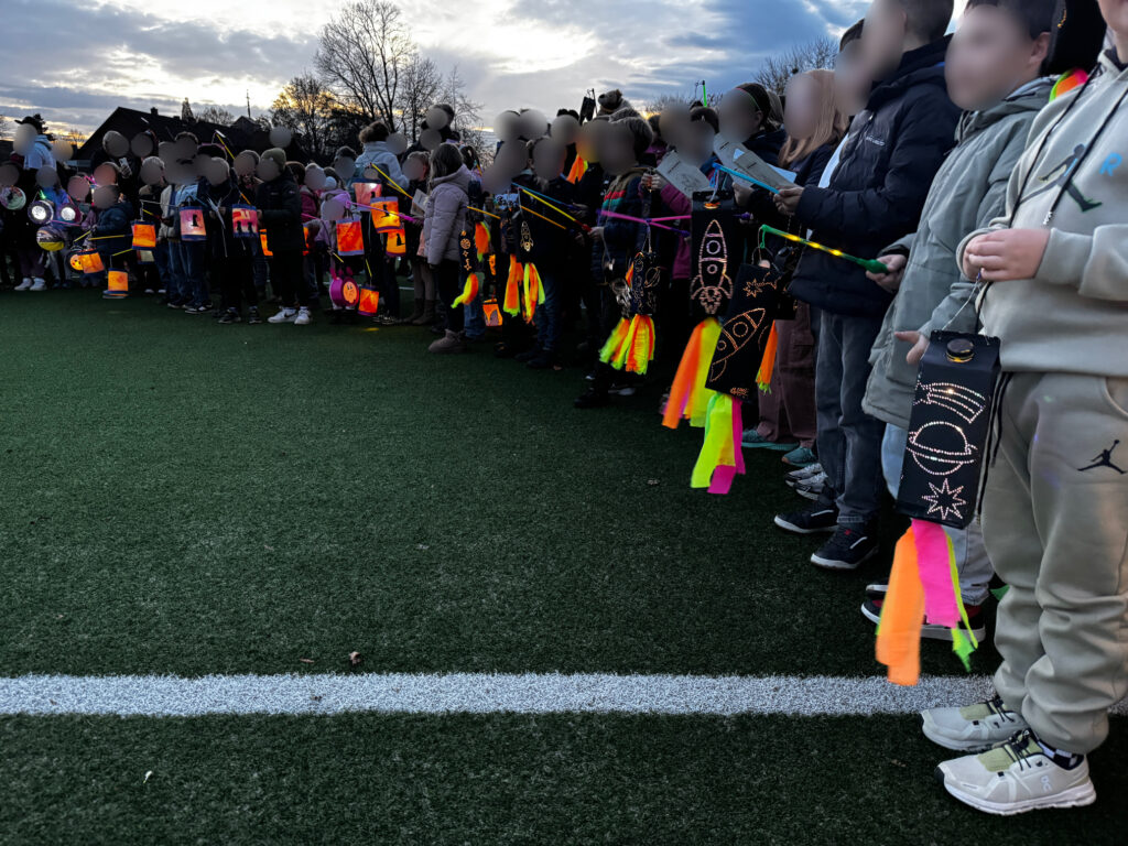 Anschließend gab es auf dem Schulhof noch ein gemütliches Beisammensein mit Martinsbrezeln, Würstchen im Brötchen, Kinderpunsch und Glühwein für die Erwachsenen. Es war ein richtig schönes Fest – mit viel Licht, Musik, Lachen und Gemeinschaft. 🌟